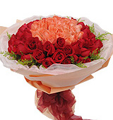 商品介绍 :33枝粉玫瑰居中,66枝红玫瑰围绕,外层适量黄莺围绕